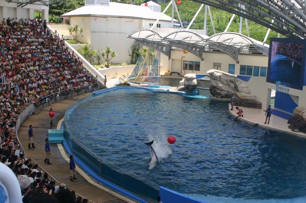 我們到達海洋公園後,第一個想要看的其實就是海豚秀了。找了工作人員詢問一下,發現其實下午四點多還有一場,
