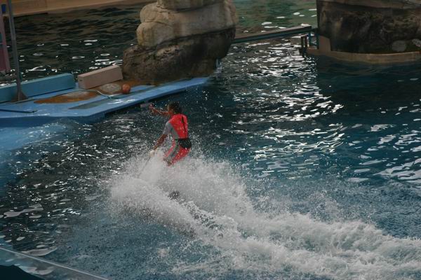 終於,海豚秀開演了!馴養員實在很厲害,可以將海豚教育的那麼乖,而且表演的這麼精彩!